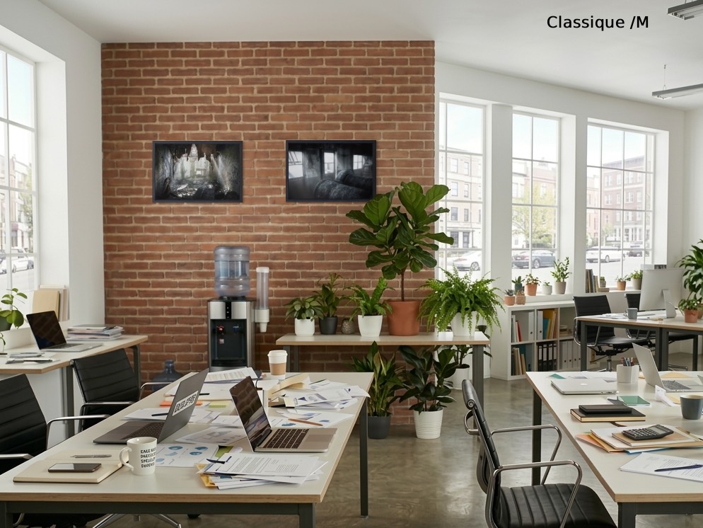 - Le standard idéal pour les salles de réunion, les espaces d'attente ou de co-working, ou même le mur d'un petit restaurant. Il humanise l'environnement professionnel avec élégance et valorise votre accueil.